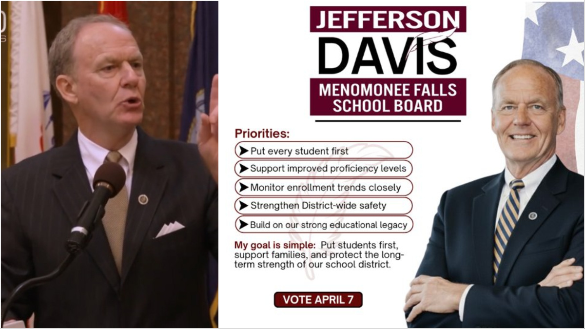 Jefferson Davis is one of three conservatives endorsed by WisRed in the increasingly contentious Menomonee Falls School Board race. The others are Nicole Barker and Dr. Joel Woppert, an incumbent; they are not involved in the lawsuit.