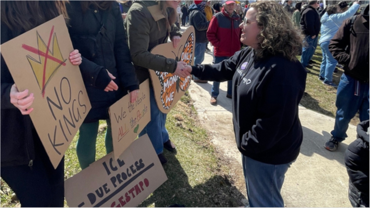 Leftist Waukesha mayoral candidate Alicia Halvensleben, who touts endorsements from Democrats in her campaign against conservative Rep. Scott Allen, absolutely loved the No Kings protests. She was all in.