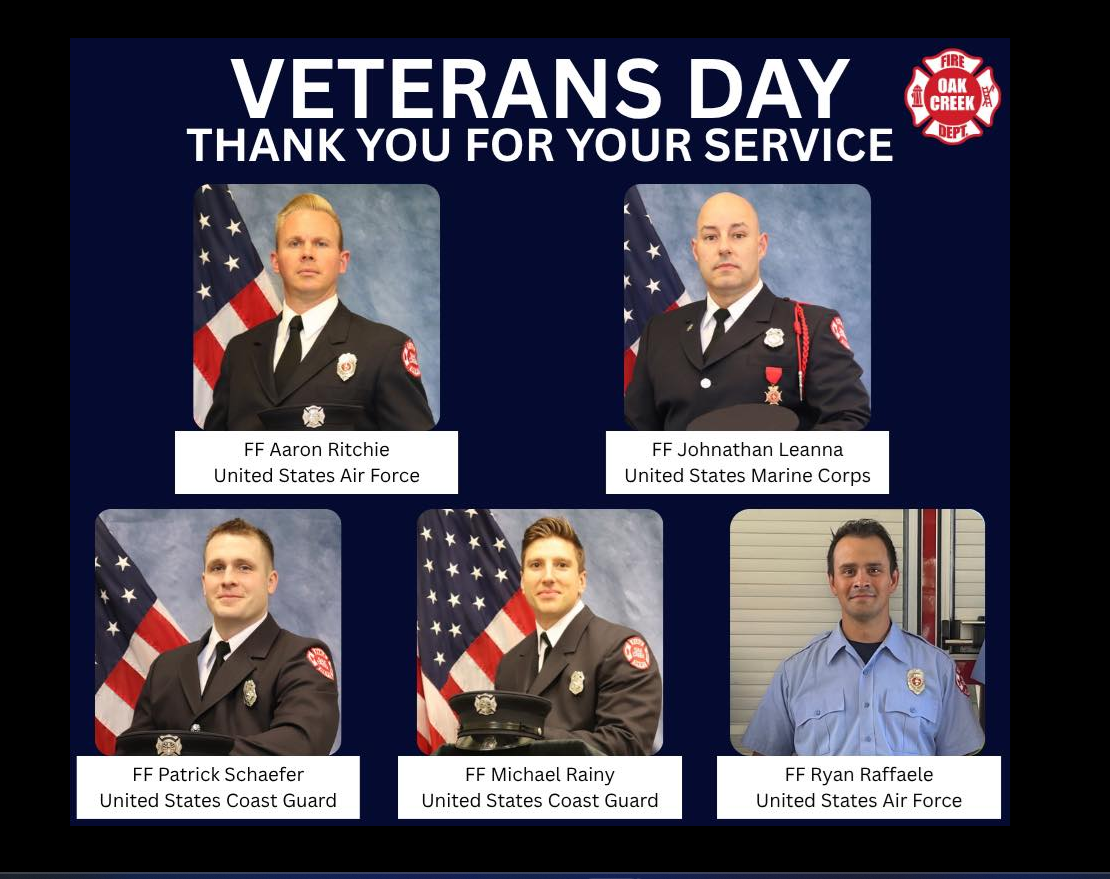 “Happy Veterans Day! The OCFD thanks all of those who have served especially those here in our community and at the OCFD,” the Oak Creek Fire Department wrote.
