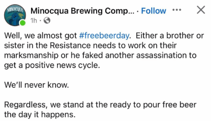 Bangstad’s company posted that it would be a free beer day if President Donald Trump dies.