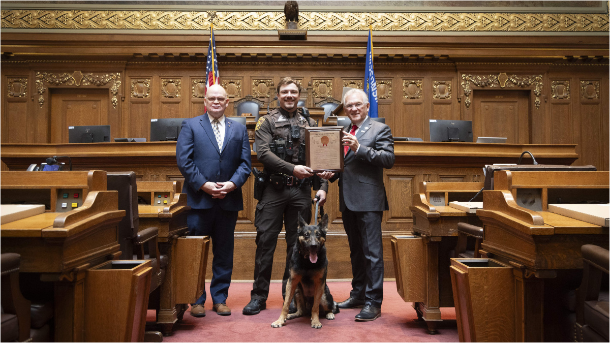 O’Connor (R-Fond du Lac) released the following statement after honoring Fond du Lac Sheriff’s Deputy Blaine Evans and K9 Iro as the 60th Assembly District’s First Responders of the Year: